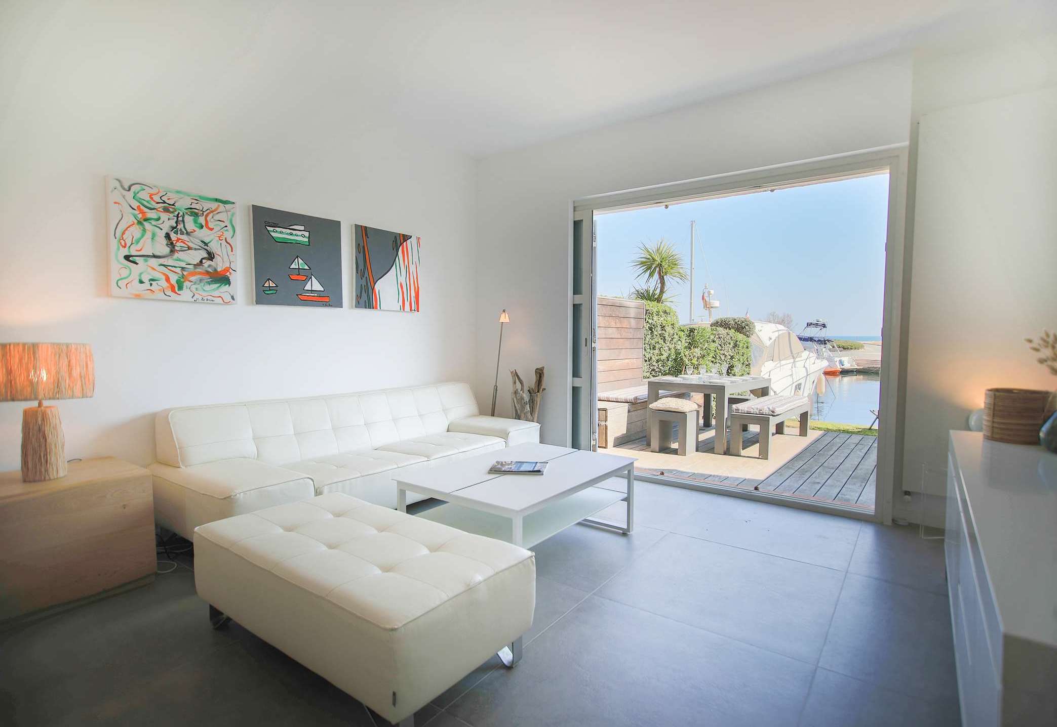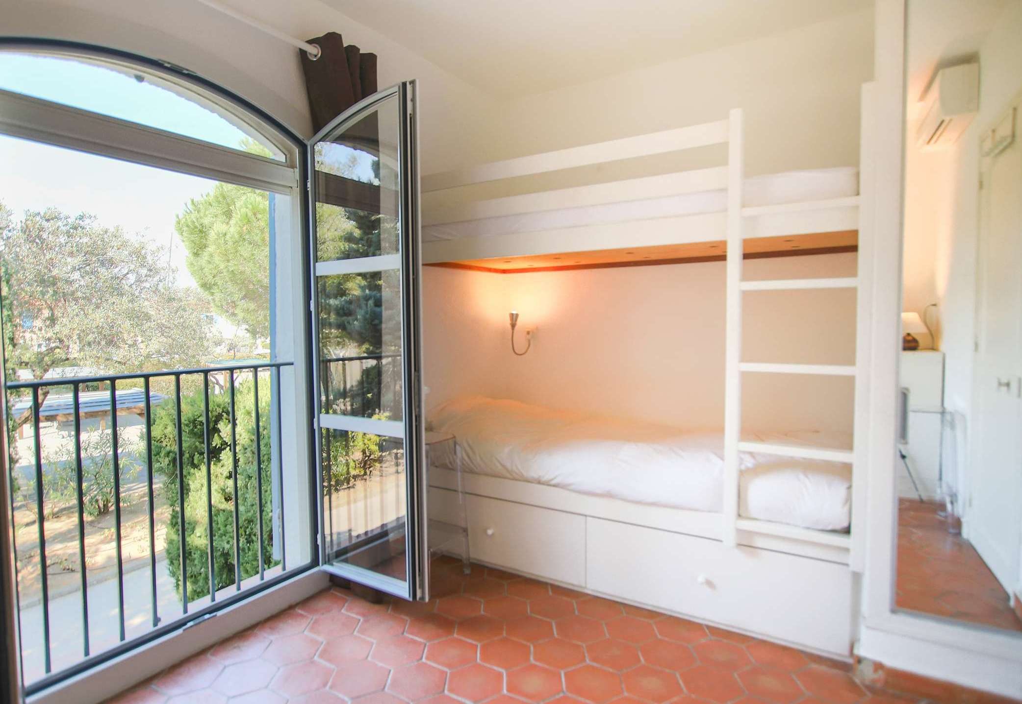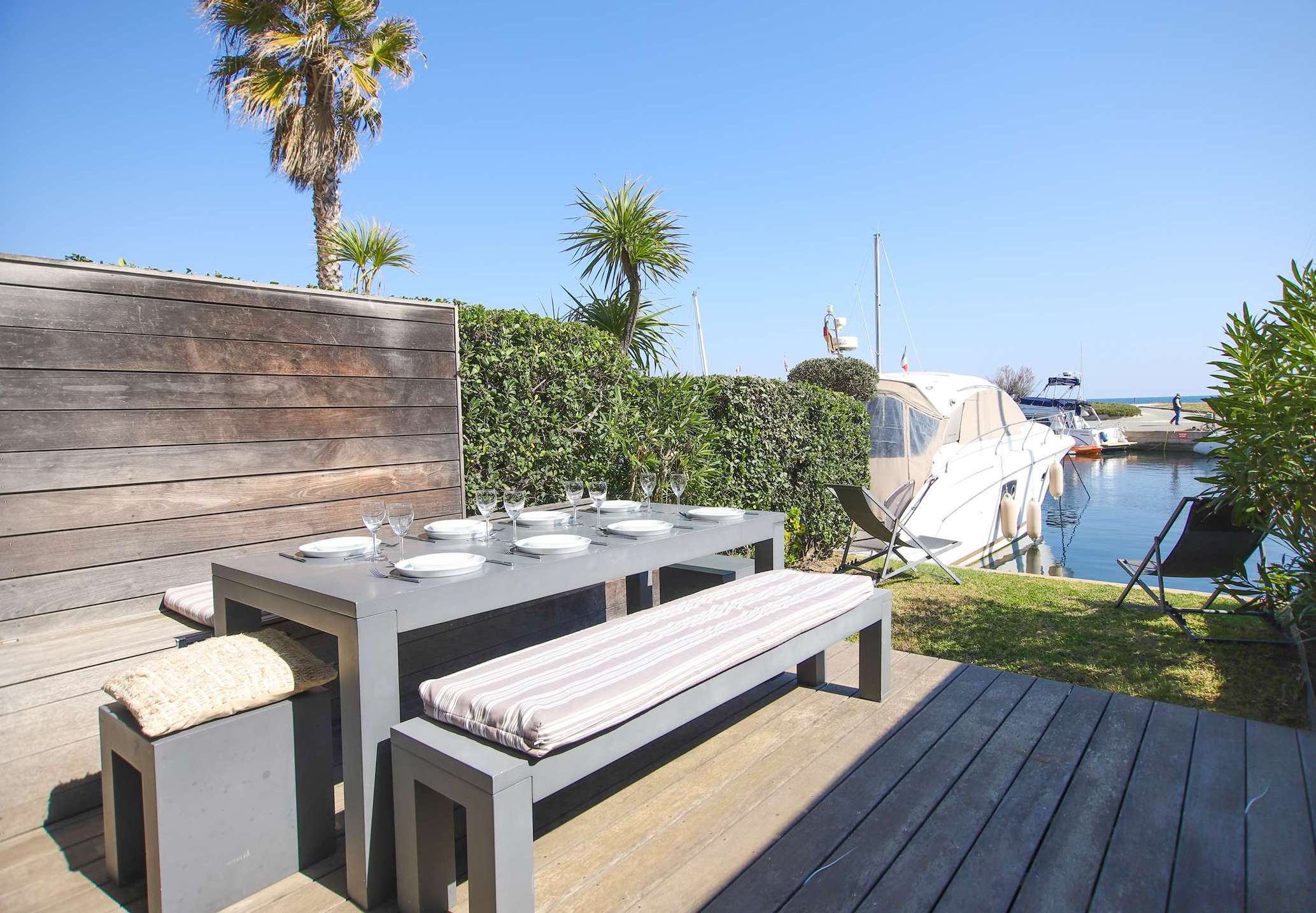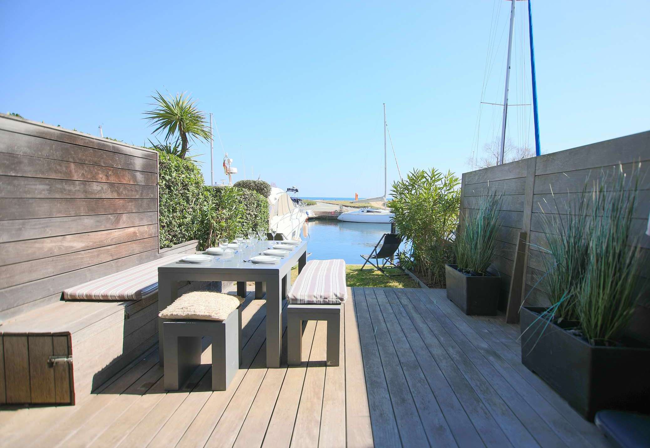 Dvoupatrový renovovaný dům se nachází na perfektním místě u pláže s panoramatickým výhledem. Leží v tiché části města Port Grimaud II. Patří k němu kromě terasy i kotviště na loď. Vhodný je pro 8 až 10 osob.