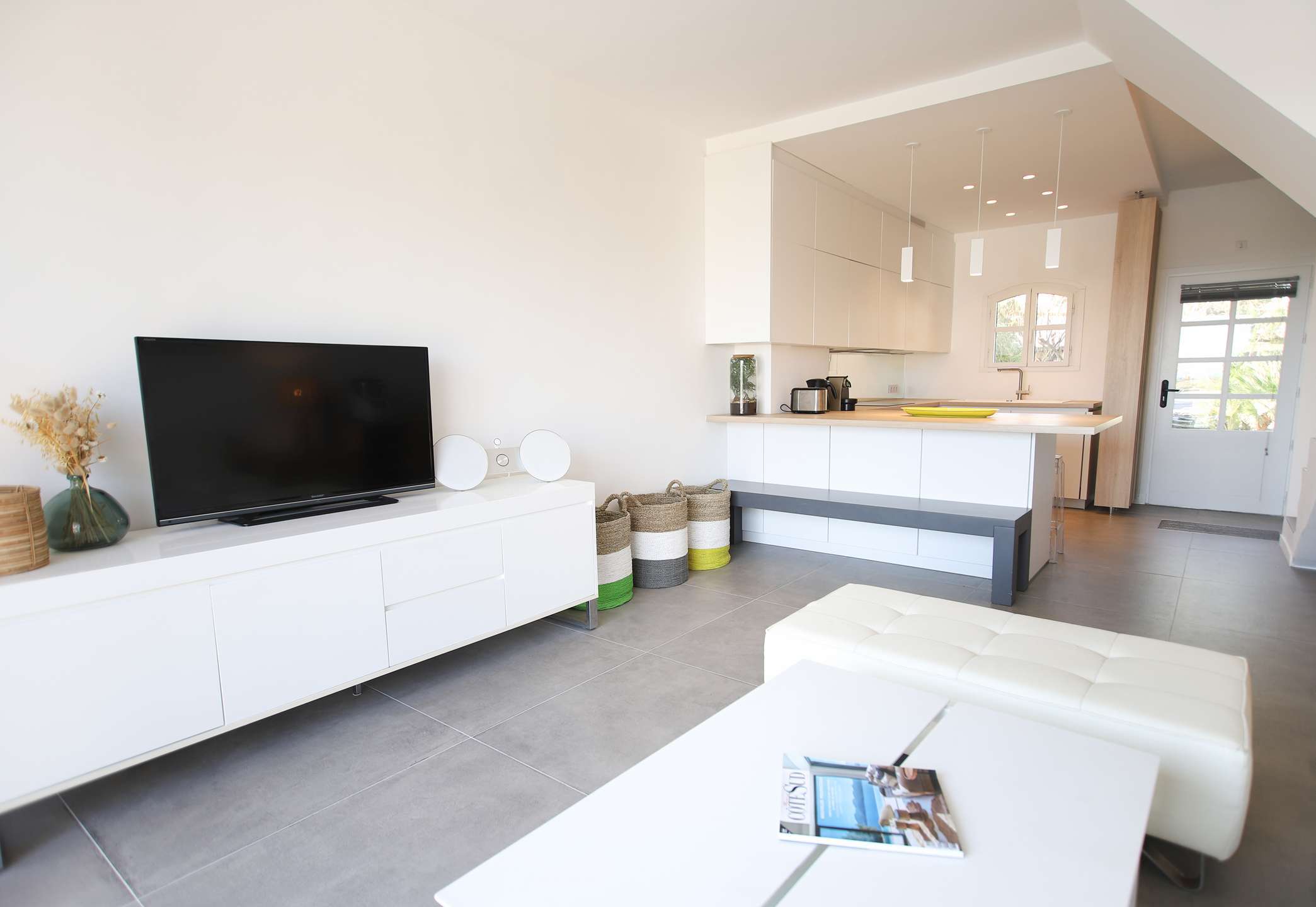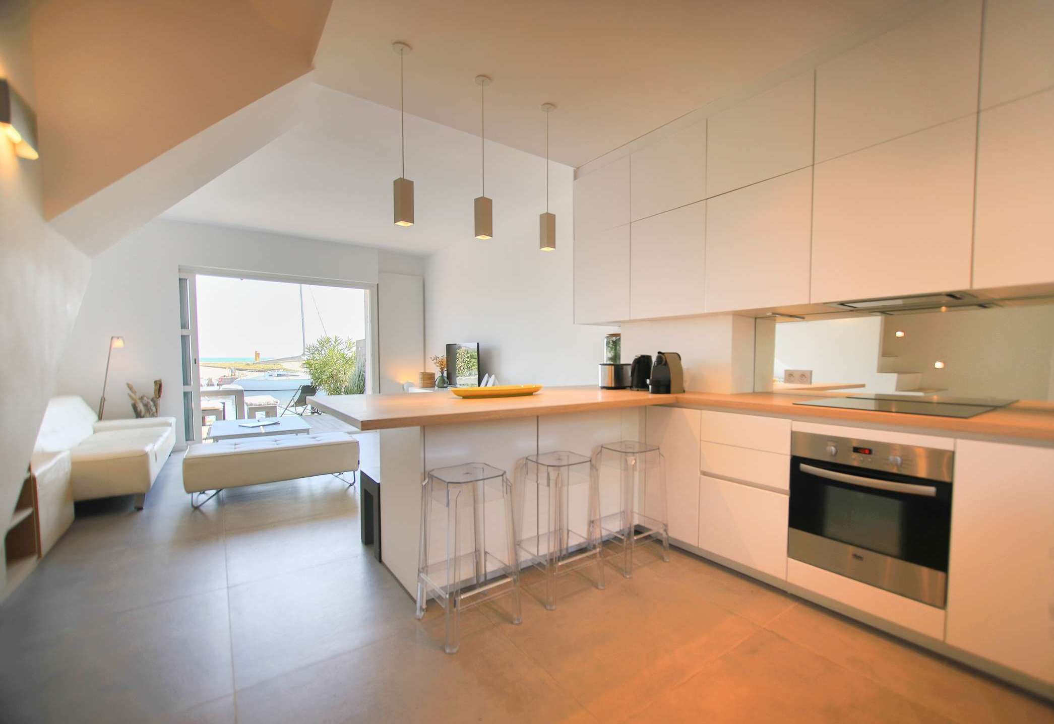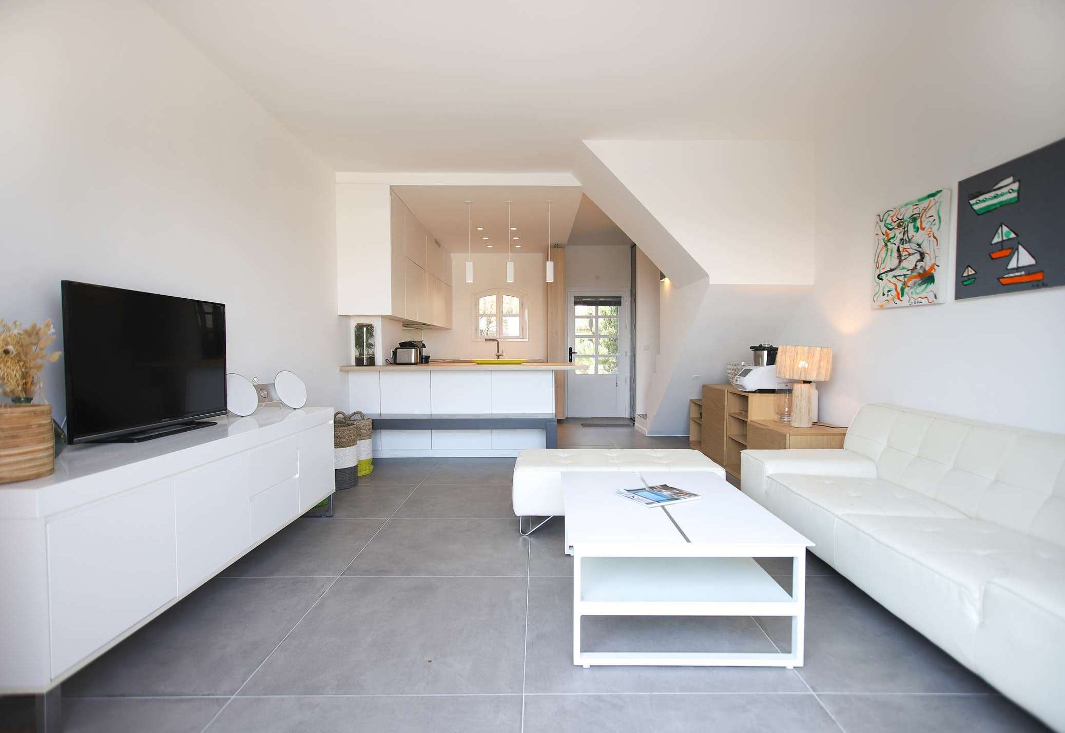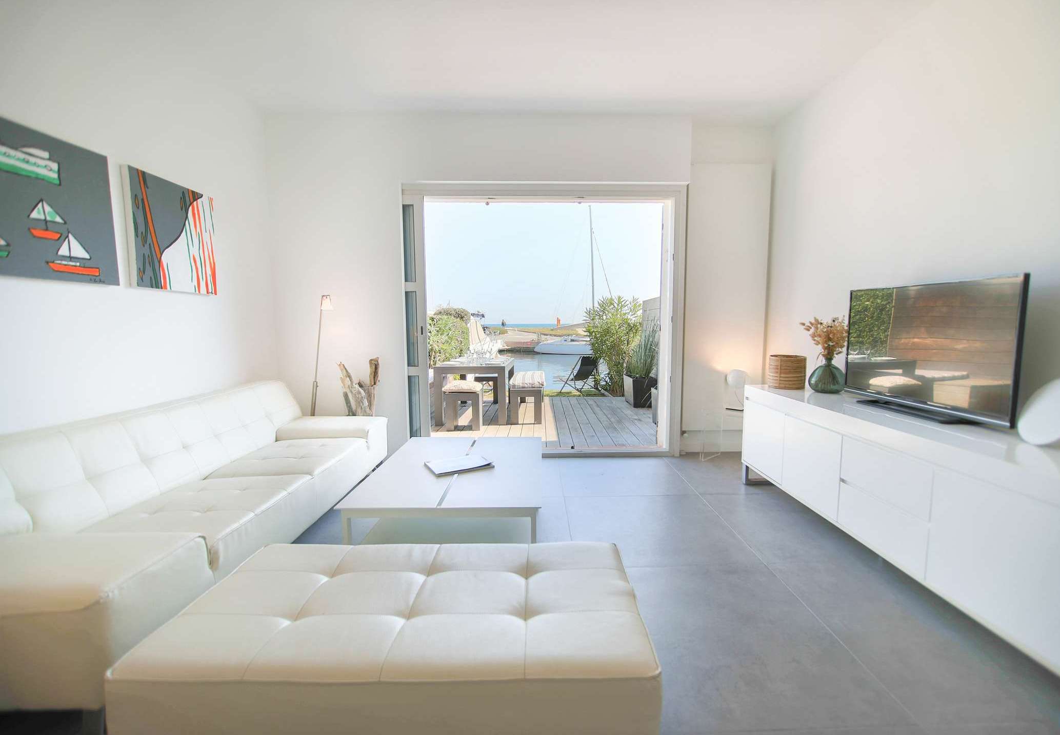 Dvoupatrový renovovaný dům se nachází na perfektním místě u pláže s panoramatickým výhledem. Leží v tiché části města Port Grimaud II. Patří k němu kromě terasy i kotviště na loď. Vhodný je pro 8 až 10 osob.