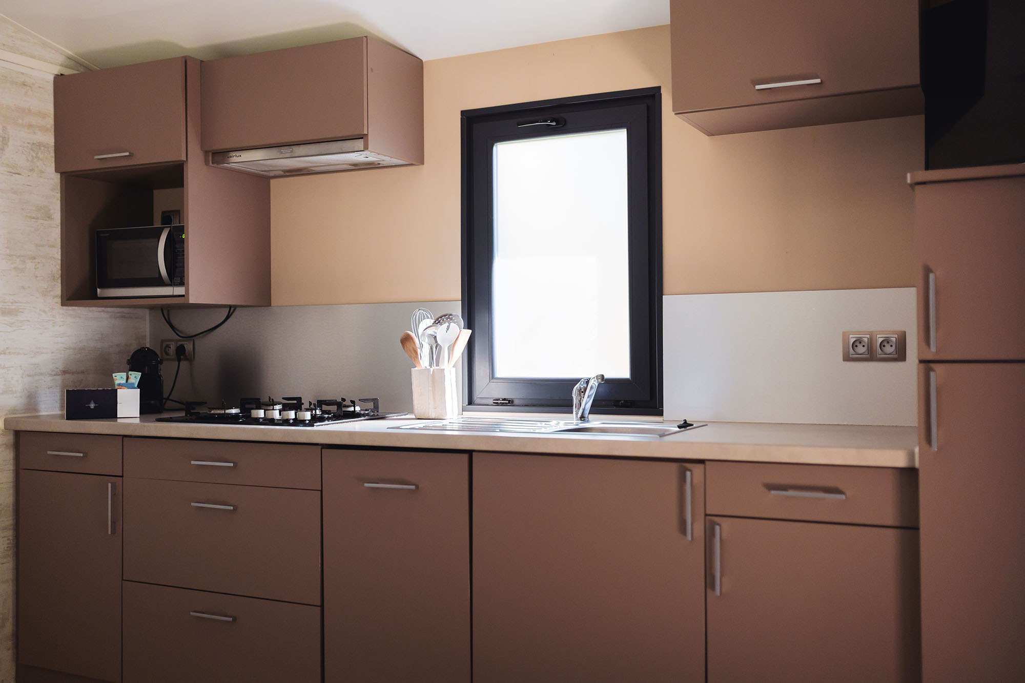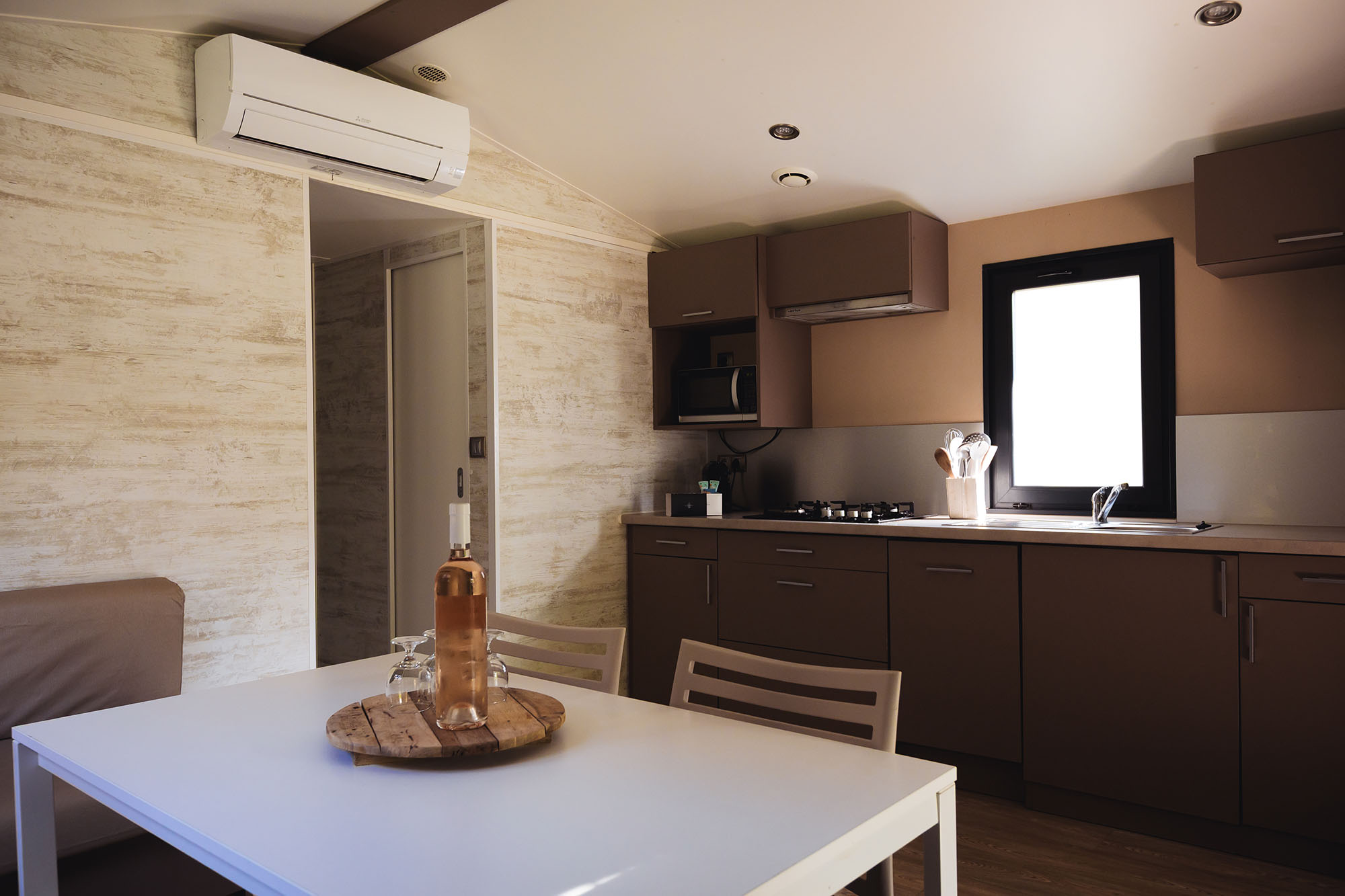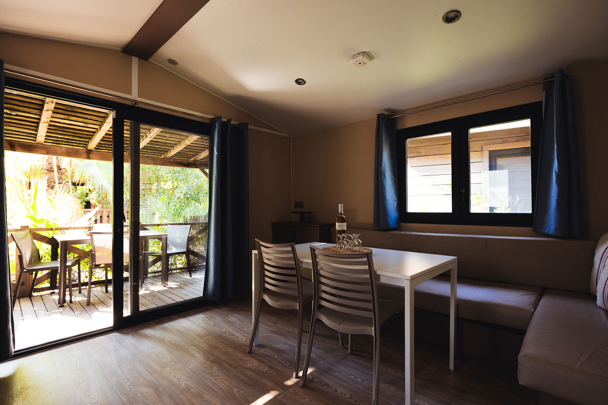Priestranný a moderne zariadený mobilný dom s dvoma spálňami je ideálny na strávenie dovolenky pre rodiny s deťmi. Leží v blízkosti pláže v krásnom prostredí tropických záhrad s krytou terasou a vlastnými lehátkami na pláž. Ubytovanie v mob. domčeku Fare 2 plus je možné na ľubovoľný počet nocí.